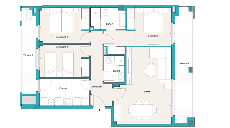 VIVIENDA B | ESC 1 | plantas 2ª- 7ª | 3 Dormitorios
